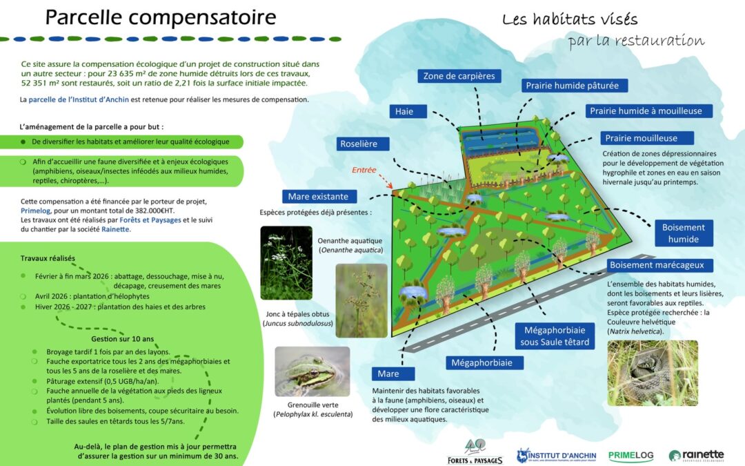 Une parcelle de plus de 5 hectares, classée zone humide, est aujourd’hui restaurée et entretenue pour préserver durablement la biodiversité de notre territoire